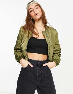 Asos Brand Cropped Bomber Jacket In Khaki, $73 | Asos | Lookastic