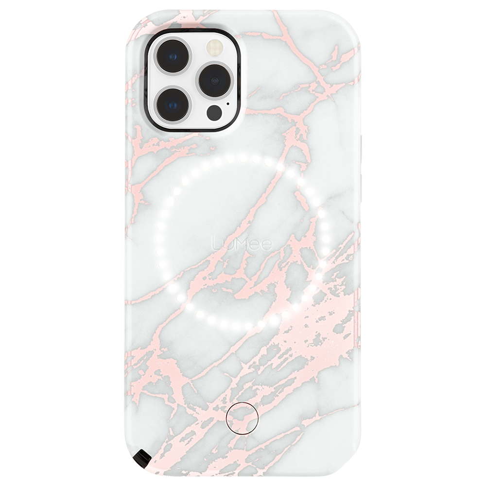 LuMee HALO by Case-Mate - Light Up Selfie Case for iPhone 12 Pro Max (5G) - Front \u0026 Rear Illumination - 6.7 Inch - Rose Gold White Marble