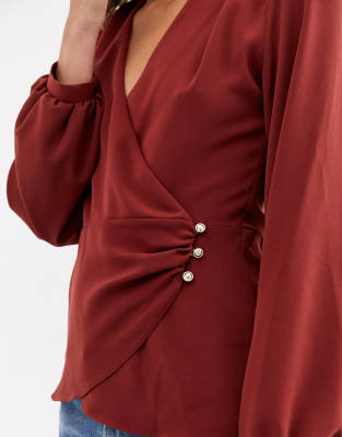 Burgundy Long Sleeve Wrap Blouse