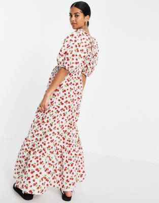 ASOS DESIGN puff sleeve tiered maxi
