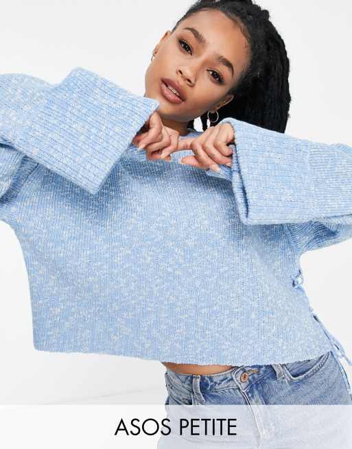 ASOS DESIGN Petite crew neck sweater with turned back cuffs in blue | ASOS