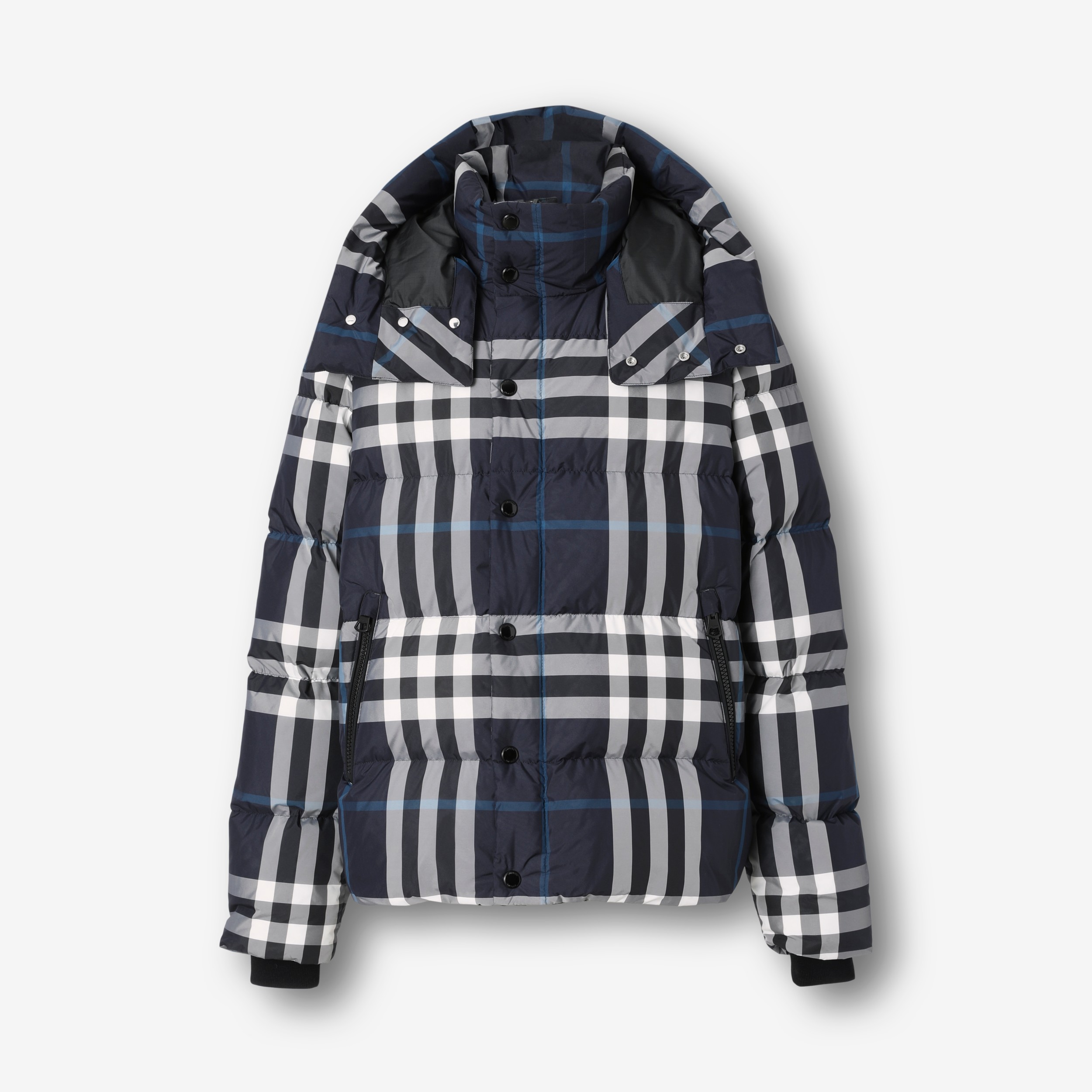 Check Hooded Puffer Jacket in White/dark Charcoal Blue - Men | Burberry® Official