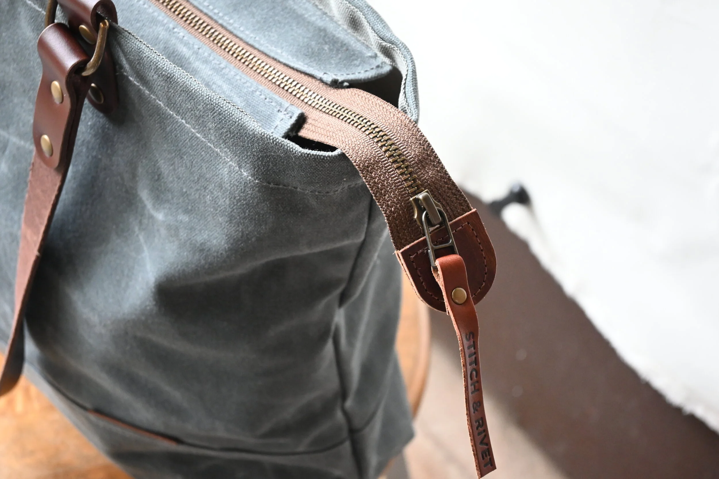 waxed canvas and leather zipper tote