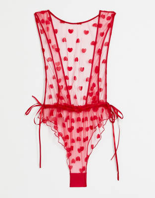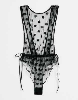 ASOS DESIGN heart print mesh bodysuit